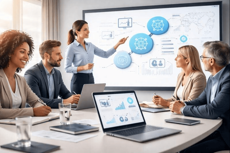 Die Executive Academy richtet sich an Geschäftsführer und Entscheider. Sie schafft ein klares Verständnis für Plattformstrategien, Automatisierung und KI – ohne technische Tiefe, aber mit Fokus auf ROI und Steuerbarkeit.
